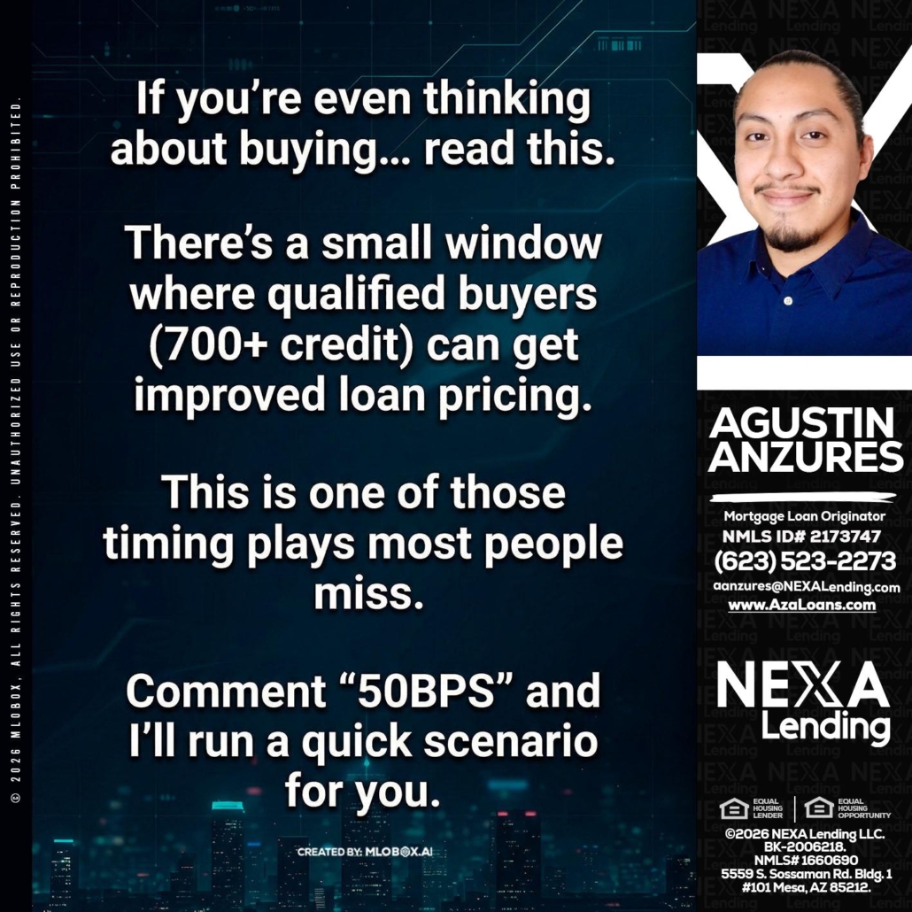 IF YOU EVER - Agustin Anzures -Mortgage Loan OriginatorHi, my name is Agustin Anzures. I’m a Loan Officer with NEXA Lending LLC., offering personalized mortgage solutions, fast customized quotes, great rates and service with integrity.